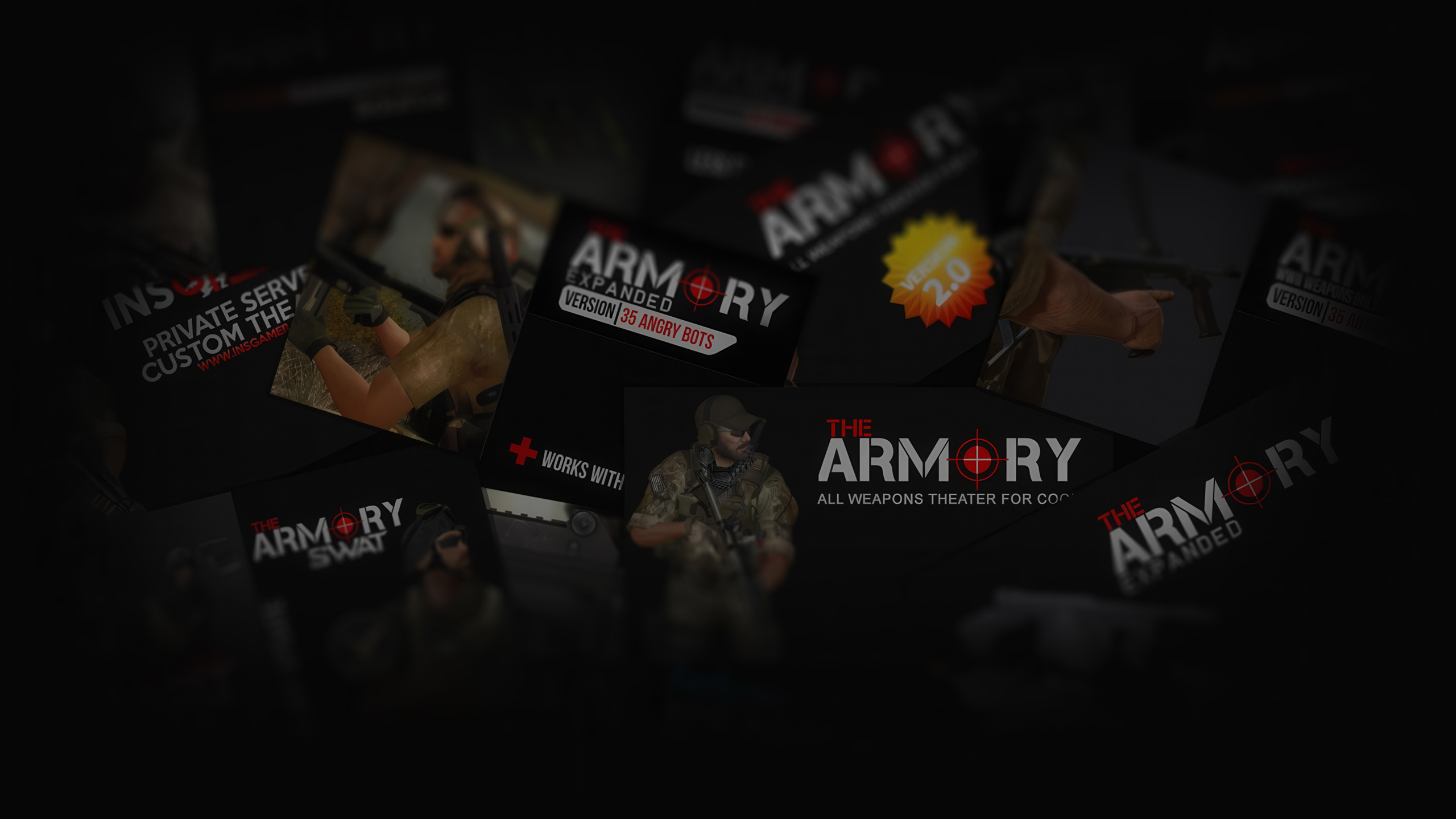 At the beginning it started off as simply unlocking a wider selection of weapons and their upgrades from what stock 'vanilla' game had to offer for the gametype Checkpoint. It quickly garnered speed by adding waves of new weapons and their upgrades; but also evolved over time by fully utilizing the power of the theater scripting system. The Armory modifications also come to support favorite community server features such as the medic, engineer and suicide bomber plug-ins, and are always open to support new features even as time goes on.